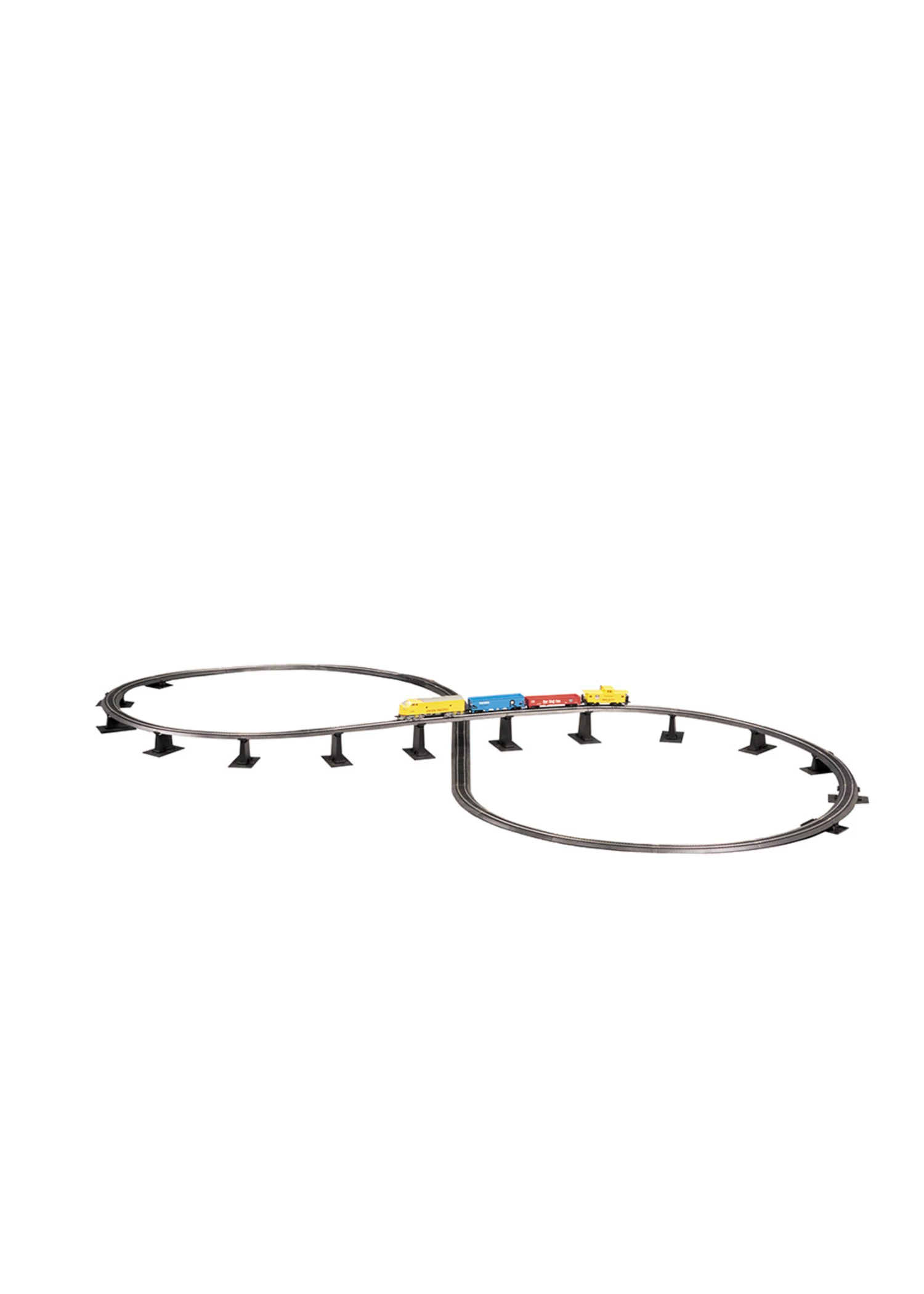 Railroading fun gets bigger and better with our steel alloy E-Z Track® Over-Under Figure 8 Track Pack! Create a giant 78″ x 36″ over-under “Figure 8” with the 14-piece graduated pier set, 20 pieces of 18″ radius curved E-Z Track®, and 4 pieces of 9″ straight E-Z Track® included in this track pack.