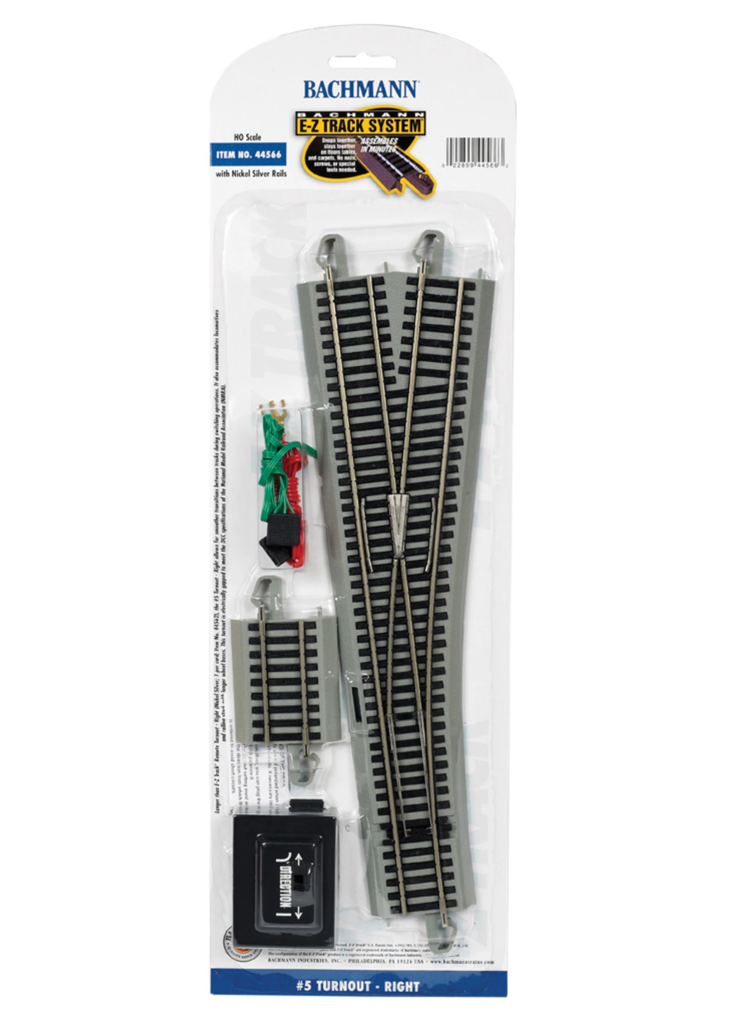 Longer than E-Z Track® Remote Turnout – Right, the #5 Turnout – Right allows for smoother transitions between tracks during switching operations. It also accommodates locomotives and rolling stock with longer wheel bases.