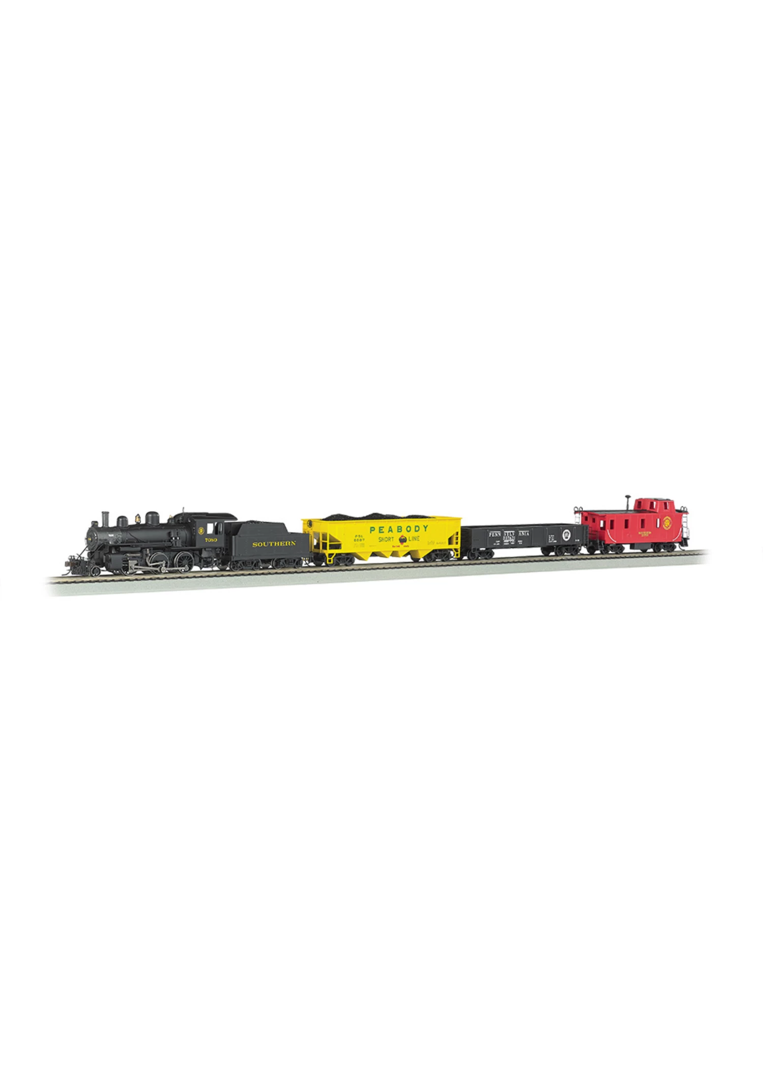A whistle echoes through the walls of a deep valley as you hear the unmistakable chuffing of a classic steam locomotive approaching. The Echo Valley Express is steaming ahead with carloads of coal to fuel America’s hungry furnaces. It features a DCC sound-equipped Alco 2-6-0 with a steam sound package that includes authentic prototypical chuff, short and long whistles, bell, air compressor, and blower–all in polyphonic 16-bit sound that you can control with our E-Z Command® digital control system.