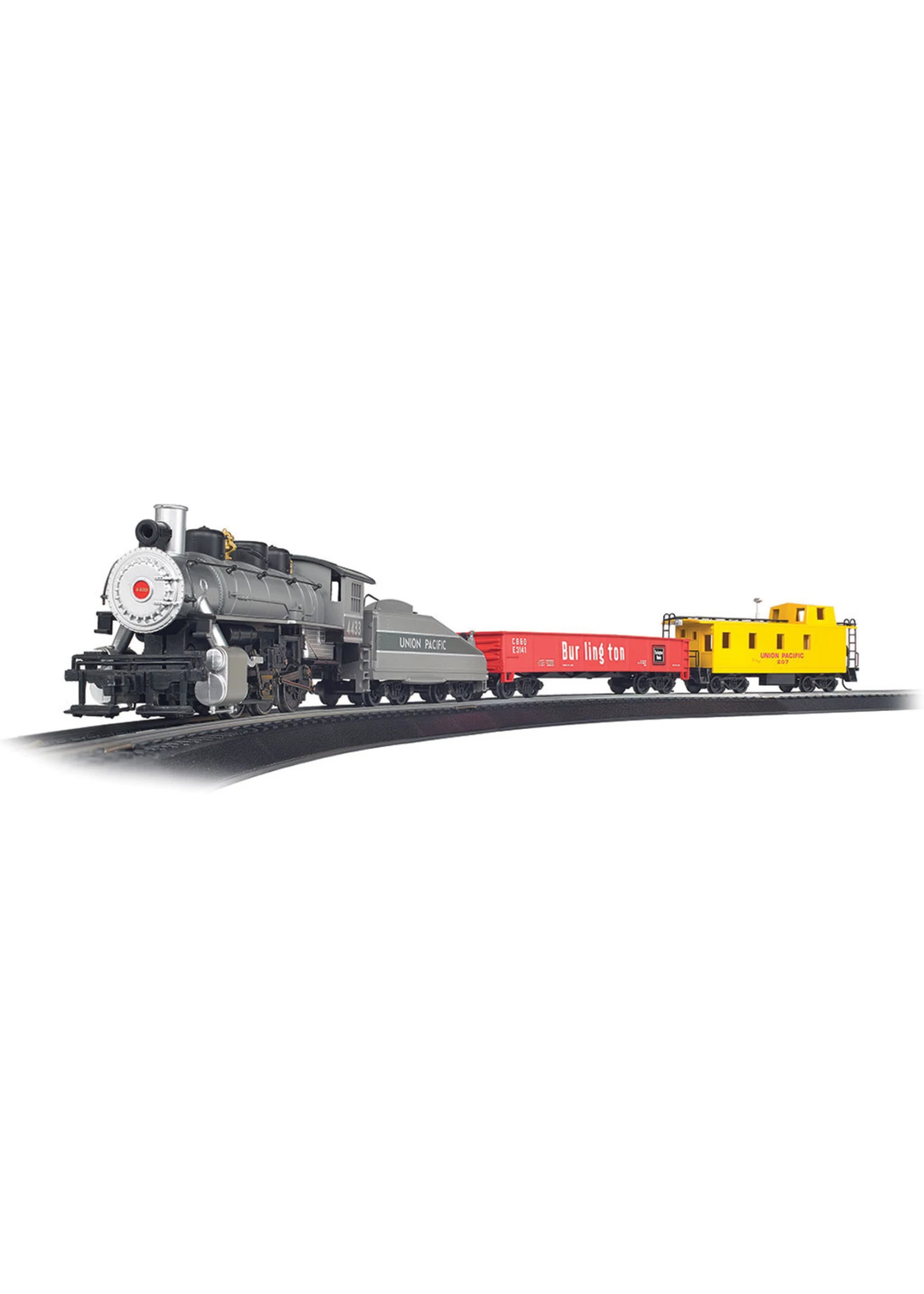 The power of a steam engine is guaranteed to be what you need to master any rail yard shunting job with ease. An 0-6-0 locomotive with Union Pacific’s® distinctive greyhound color scheme and slope tender sends a puff of smoke skyward as it prepares to position rolling stock for pickups, much like a game of strategy. Plan your moves, assemble a consist, and send freight on its way with the Yard Master!