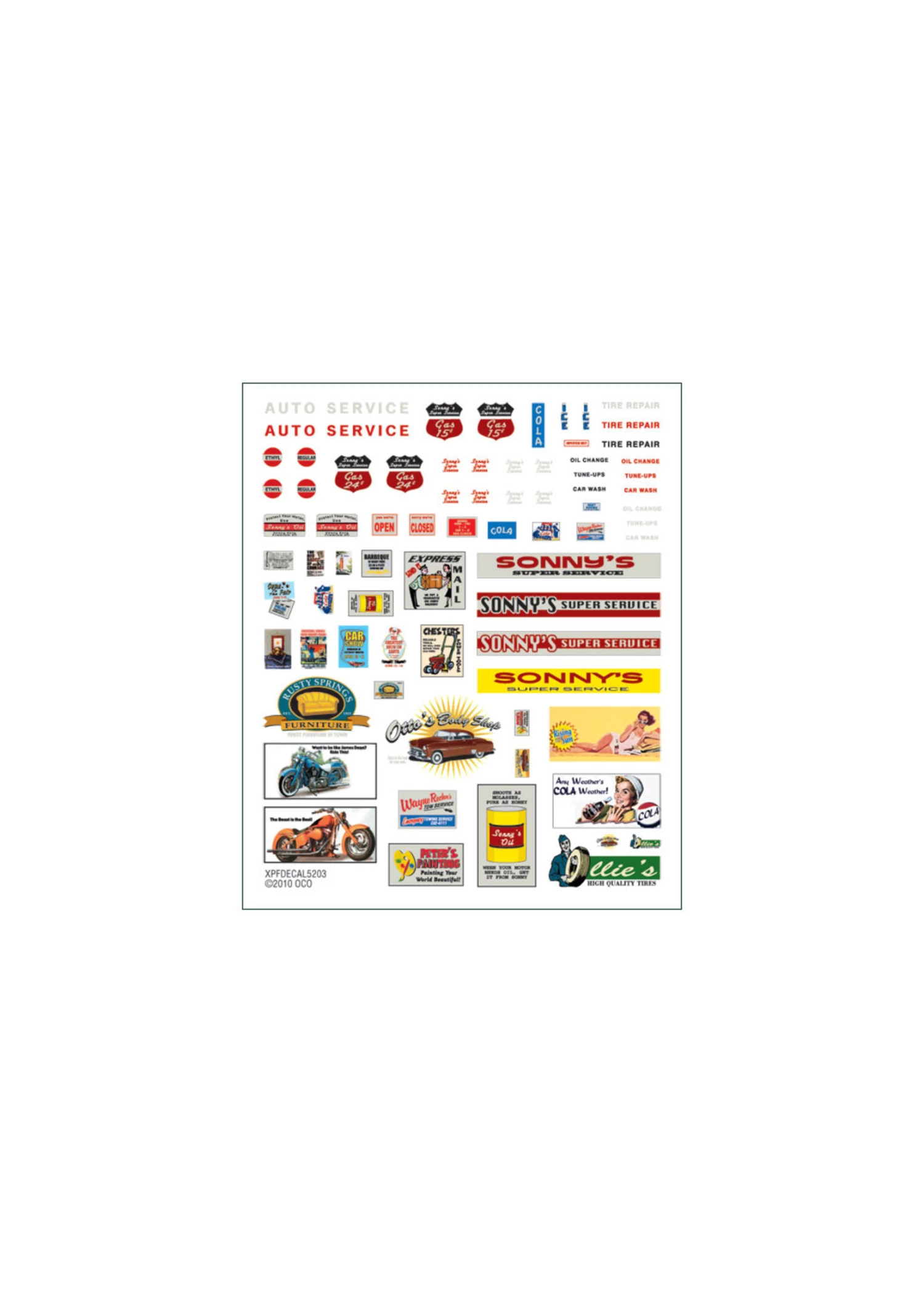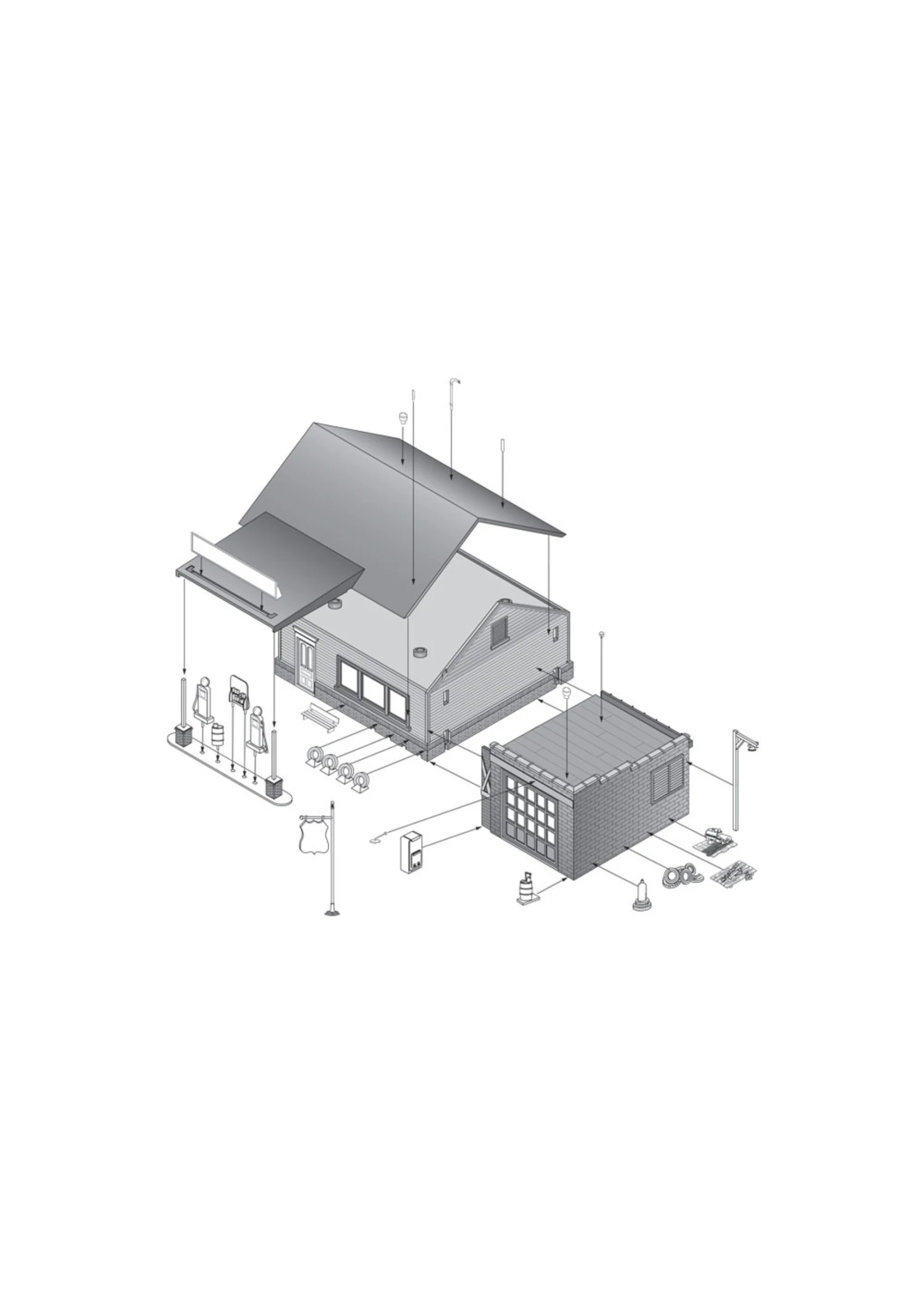 Model the bustle of your layout’s local service and gas station. Each morning Sonny’s Super Service station attendant fills gas tanks, checks oil levels, airs tires and offers a piece of automotive advice. See photos for footprint.